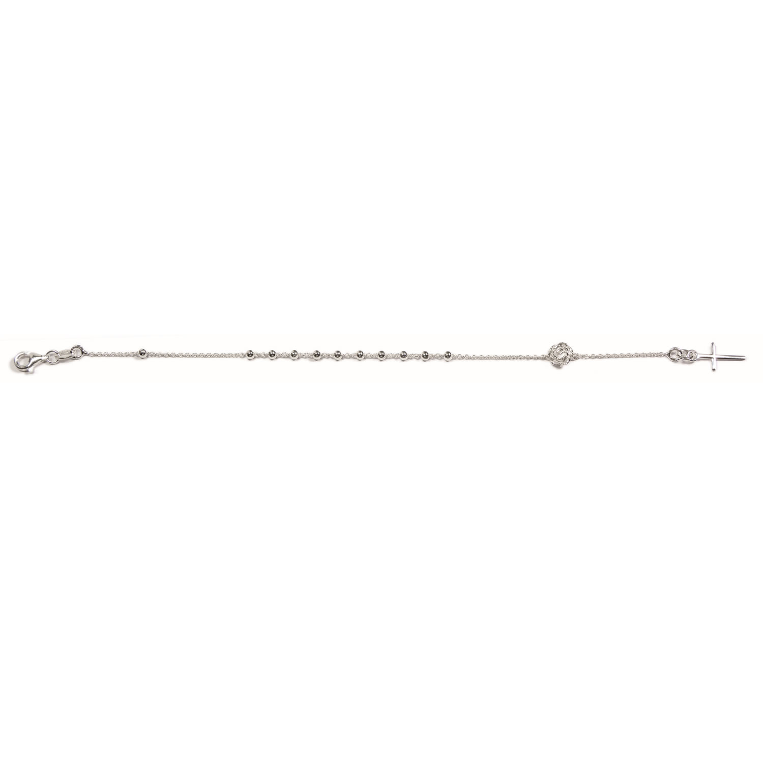 Bracciale decina in argento 925, sfere 2 mm, Croce e rosellina Argento